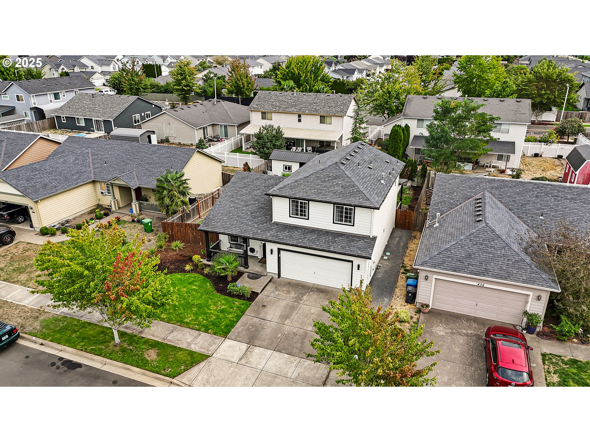 Don’t miss this well-maintained home featuring a sought-after layout with 4 bedrooms and 3 full bathrooms including a main level bedroom and full bath, perfect for guests or multi-generational living. The main floor offers a large living room area with durable laminate flooring, a spacious kitchen with granite slab countertops and dining area.Upstairs you have 2 spacious guest bedrooms or room for an office, large guest full bath, and massive primary bedroom with plenty of closet space, shower and his and her sink. Enjoy the beautifully landscaped front yard with sprinklers, and a large fully fenced backyard also with sprinklers ideal for entertaining or play. Home is in the heart of woodburn; conveniently located close to woodburn outlets, schools, restaurants, shopping, and quick access to I-5. No HOA and no CC&Rs!