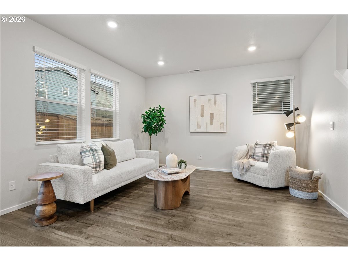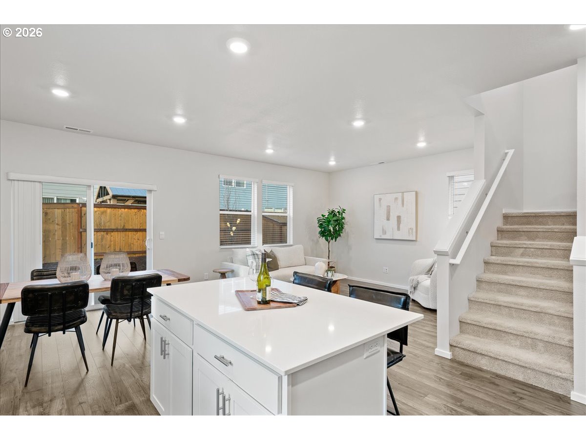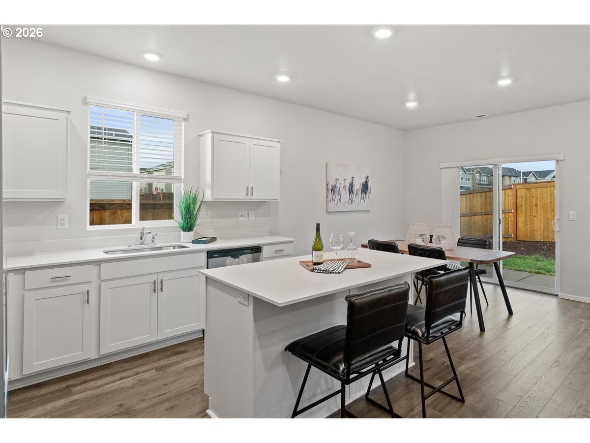 Beautifully maintained home is as pretty as it was the day it was born! Open living design with spacious kitchen island is perfect for the chef or entertaining, with sliding door to patio and fully fenced yard off the great room. Upper-level features 3 generous bedrooms plus a bonus room or 4th bedroom opportunity! Laundry is exactly where you want it near the sleeping areas and the Primary bedroom welcomes you with dual sinks and large walk-in closet! All of this on an open airy corner lot!