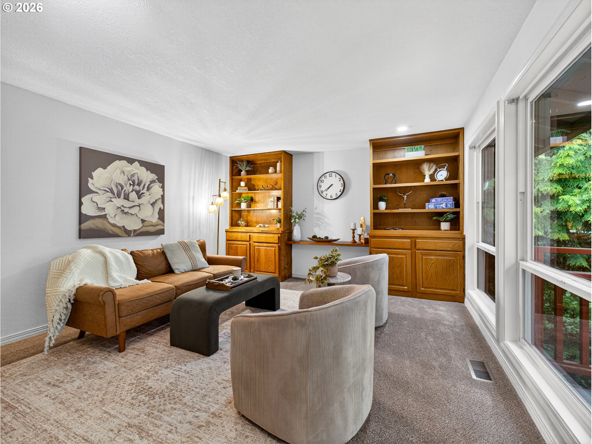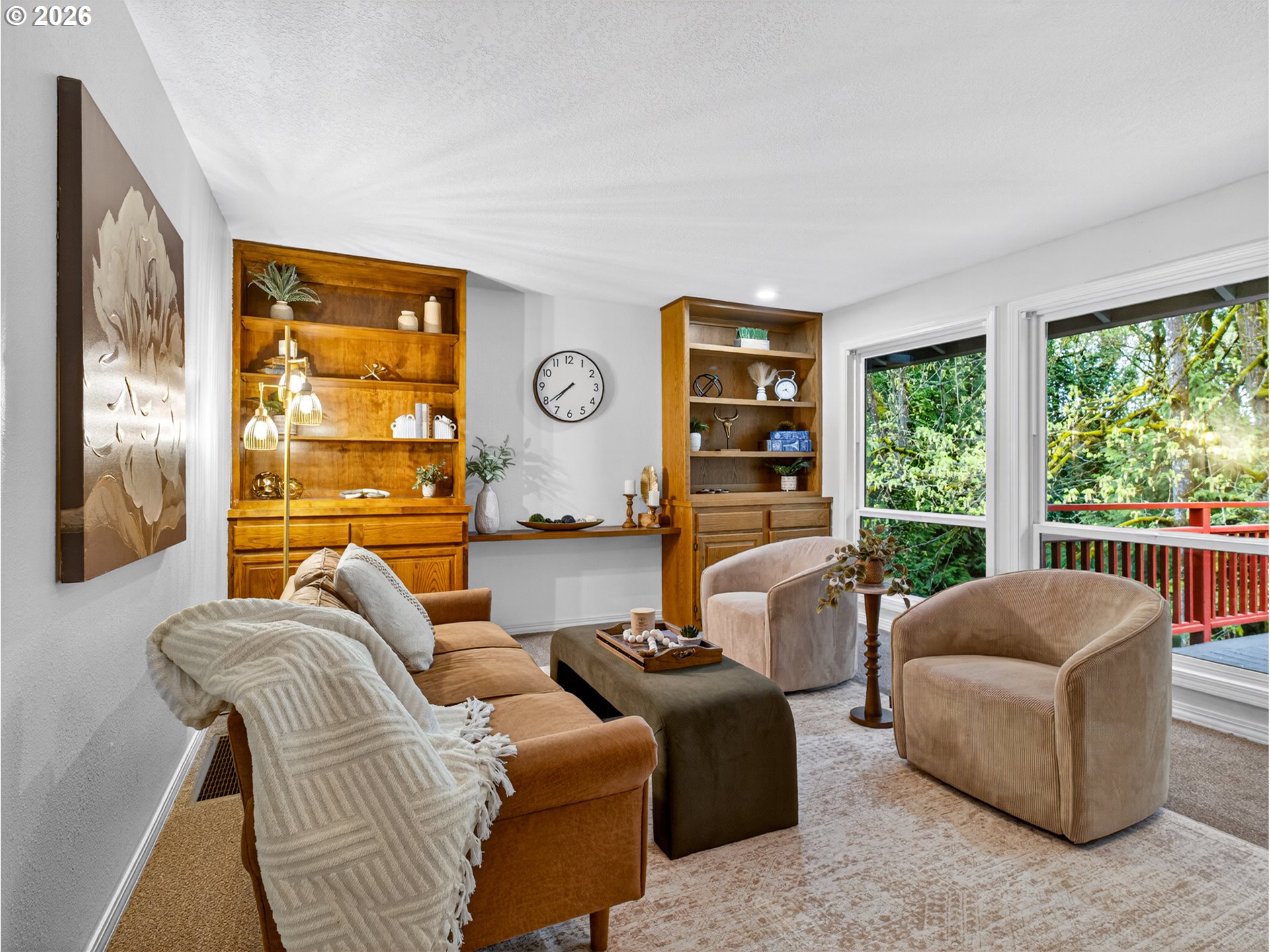 Marshall Park Forest Retreat – Tucked away on a private, lushly treed lot, this beautiful daylight ranch offers a rare blend of serenity and sophistication. Surrounded by natural habitat, the setting feels like your personal retreat, with French doors opening to a tranquil deck overlooking towering trees and peaceful greenery. Thoughtfully updated in 2026 with a NEW roof, fresh interior paint, NEW carpet, and updated bathrooms, this home is effortlessly move-in ready. The main level lives beautifully with a light-filled flow between the living room, dining room, kitchen, breakfast nook, and inviting family room. Plus, the primary suite is conveniently located on the main level. Downstairs, two additional bedrooms, a full bath, and a spacious bonus room provide flexibility for guests, additional bedroom, a theater, multigenerational living, or a private home office.Skylights pour in natural light, hardwood floors add warmth, and abundant storage enhances everyday living. The Marshall Park neighborhood is part of the Portland Southwest Trails System. Ideally located near Lewis & Clark College, Tryon Creek, and convenient amenities, close to I-5, and with quick access to shopping, downtown Portland & Lake Oswego, this home offers the perfect balance of nature, comfort, and accessibility. [Home Energy Score = 6. HES Report at https://rpt.greenbuildingregistry.com/hes/OR10246701]